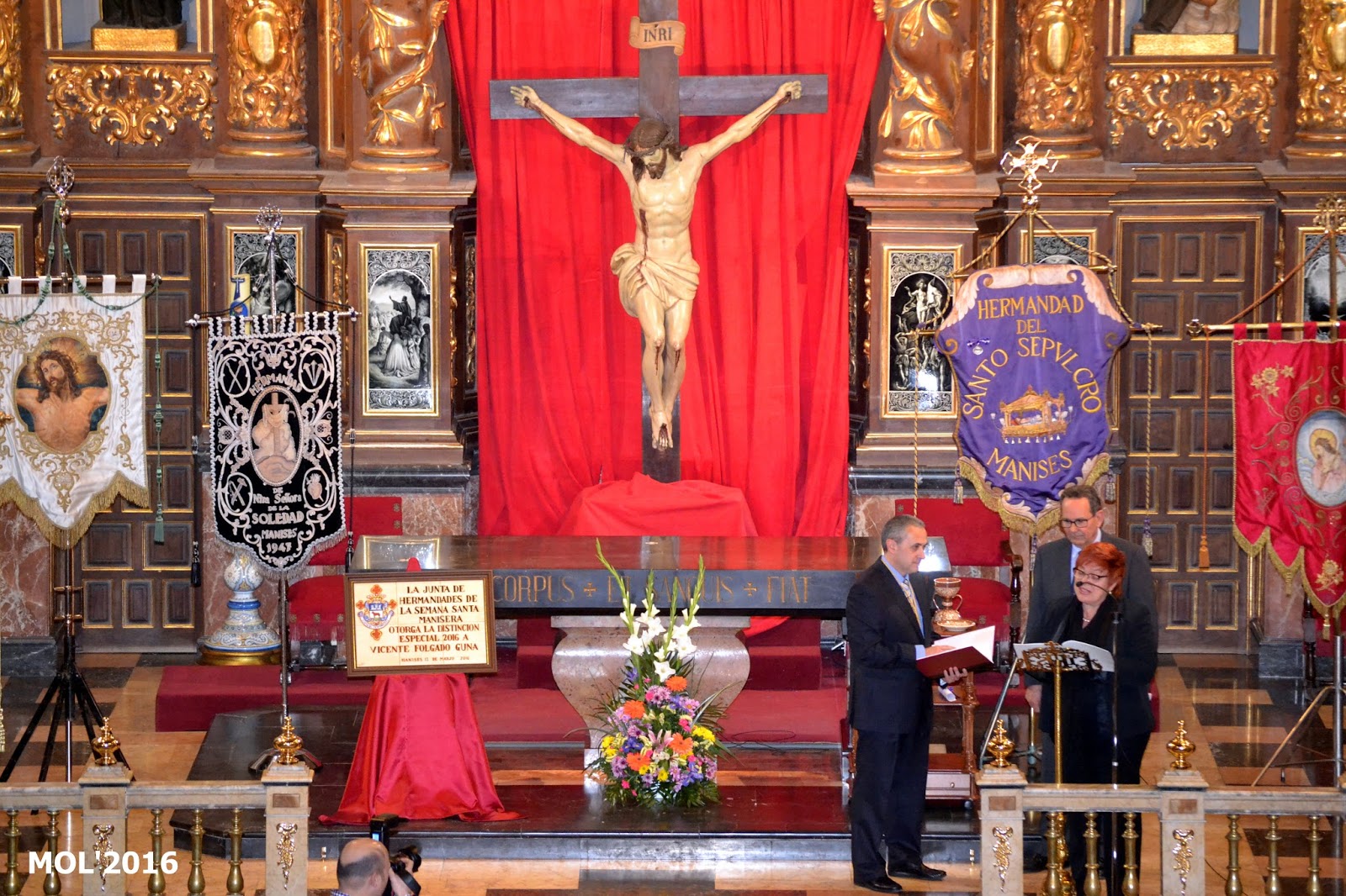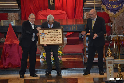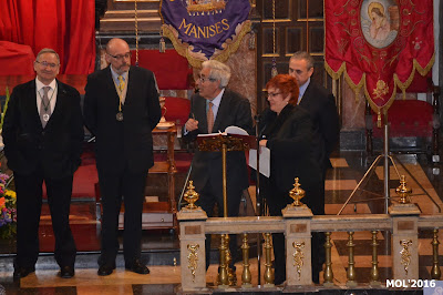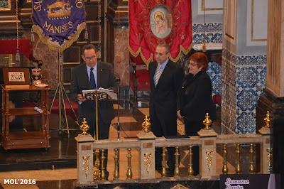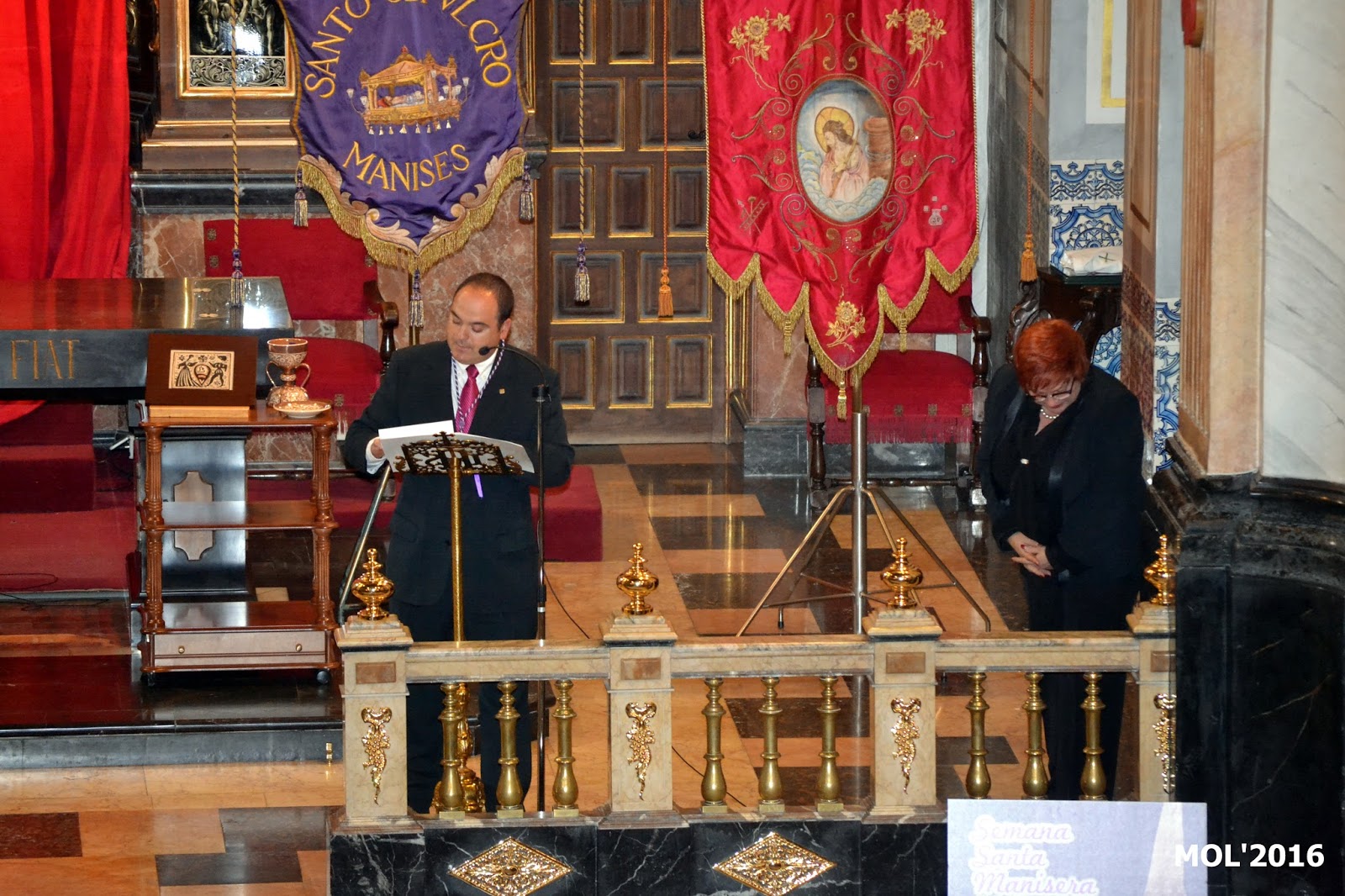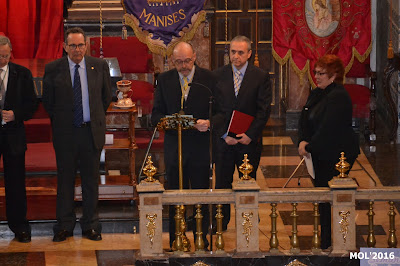José Enrique Sanchis Boluda, dando a conocer el nombre del Distinguido en este año 2016: Vicente Folgado Guna. A continuación Amparo Suria leyó su «curriculum».