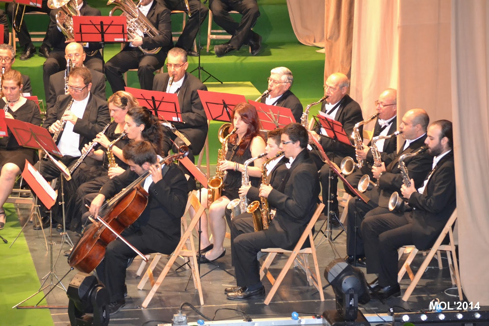 Después de efectuarse la foto de familia de todos los galardonados, ha tenido lugar un pequeño descanso para preparar el escenario, ya que en la segunda parte ha tenido lugar un pequeño concierto de la Banda La Artística Manisense.