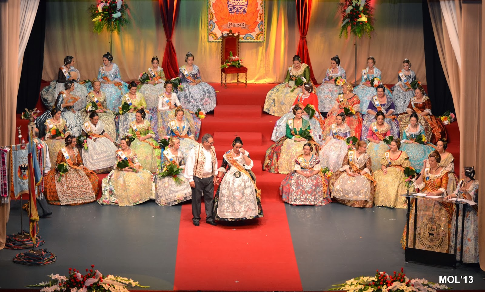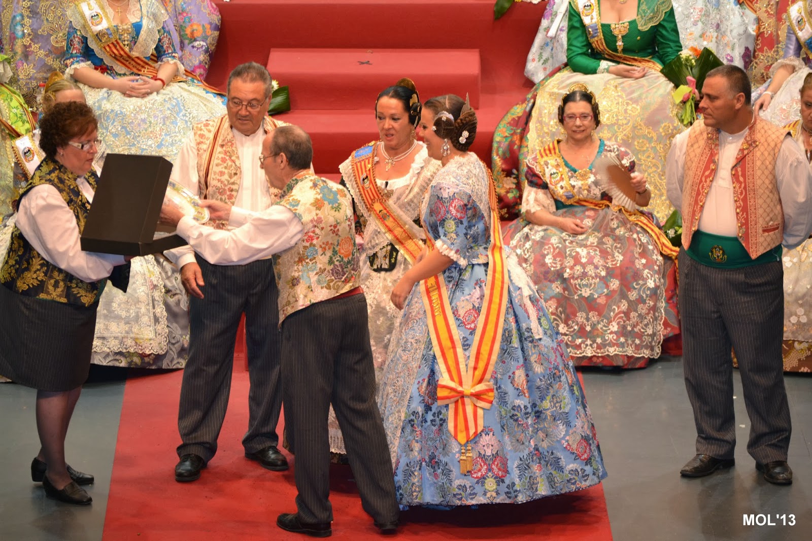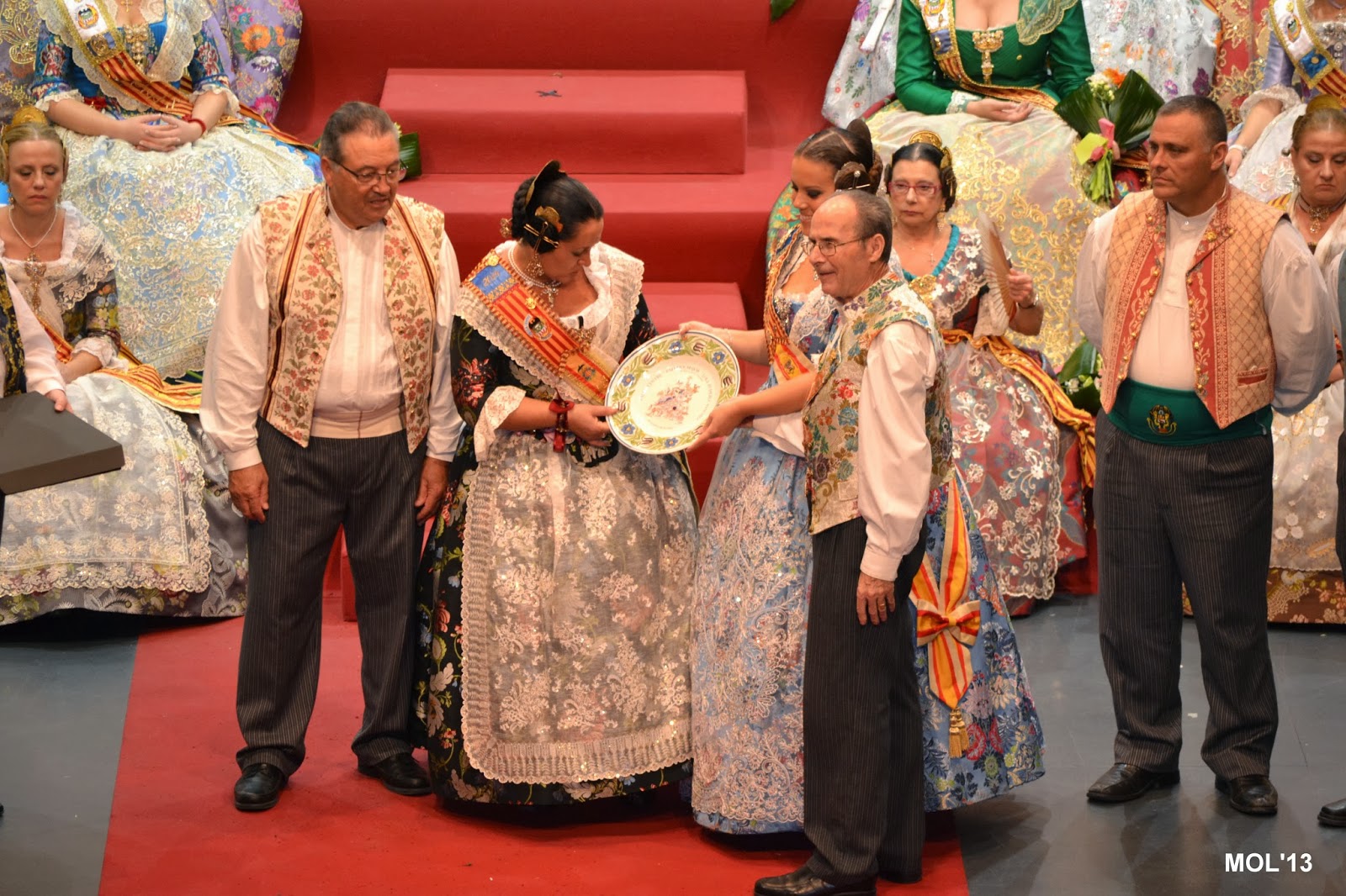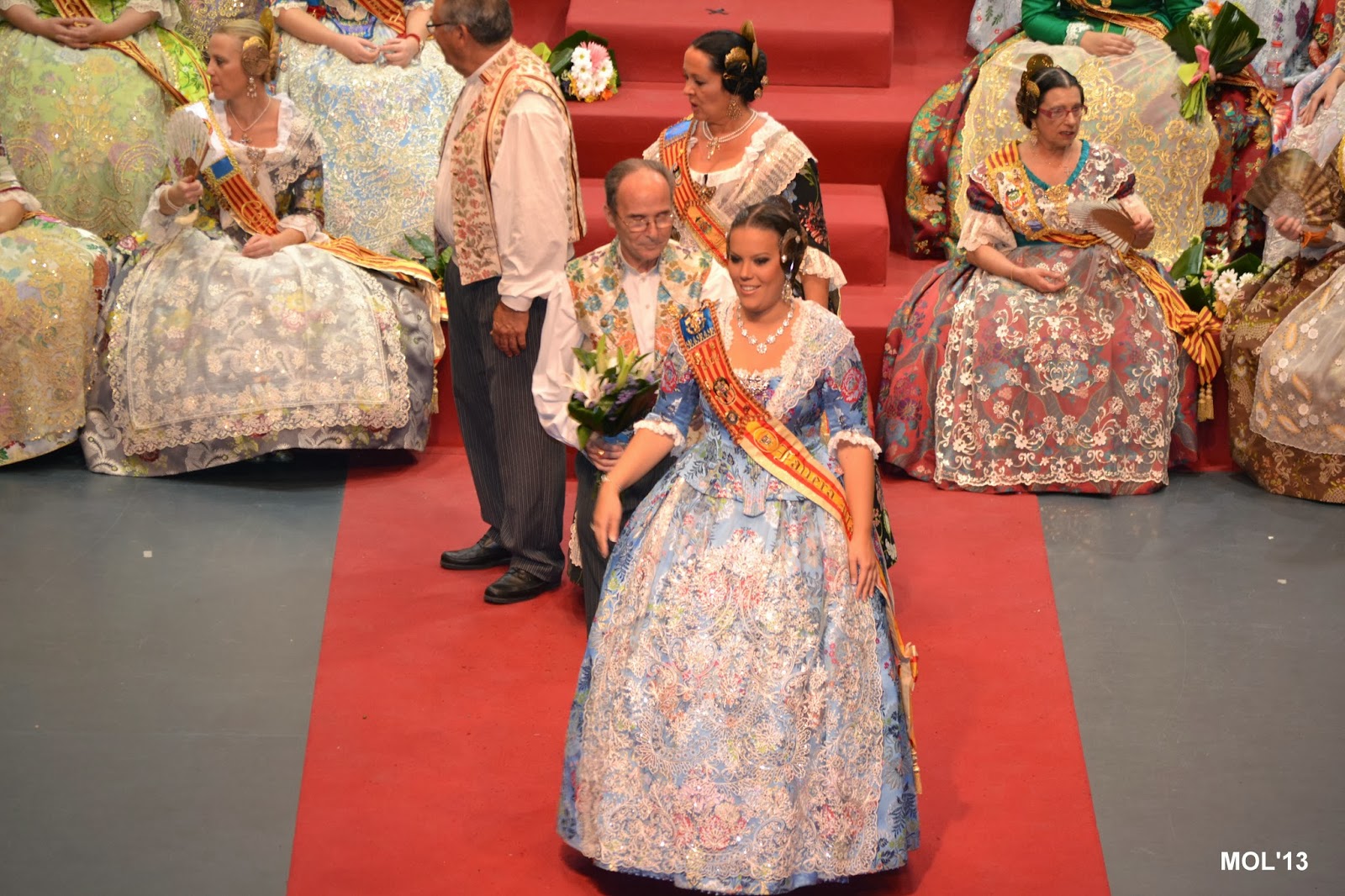 L’escenari de l’Auditori replet de falleres va despedir a la Fallera Major eixint, de 2013, i va donar-li l’entrà a la Fallera Major per a 2014, que va pendre possessió en l’admiració i aplaudiment de tot el public que omplia la sala de l’Auditori.