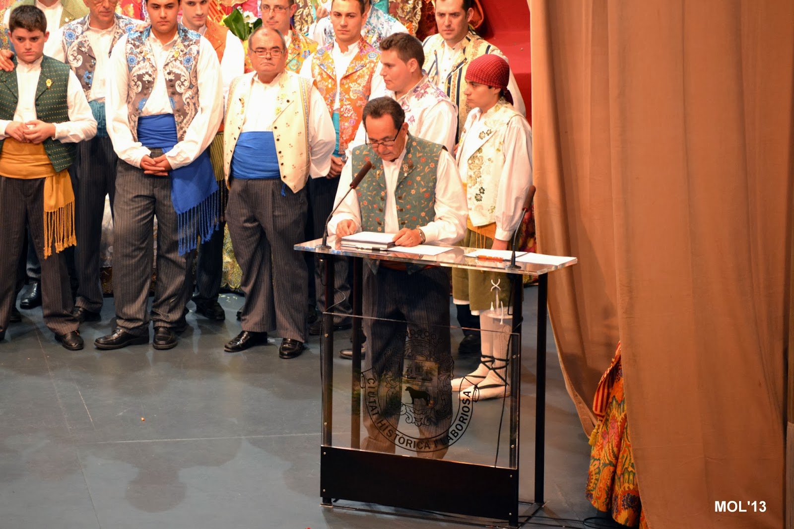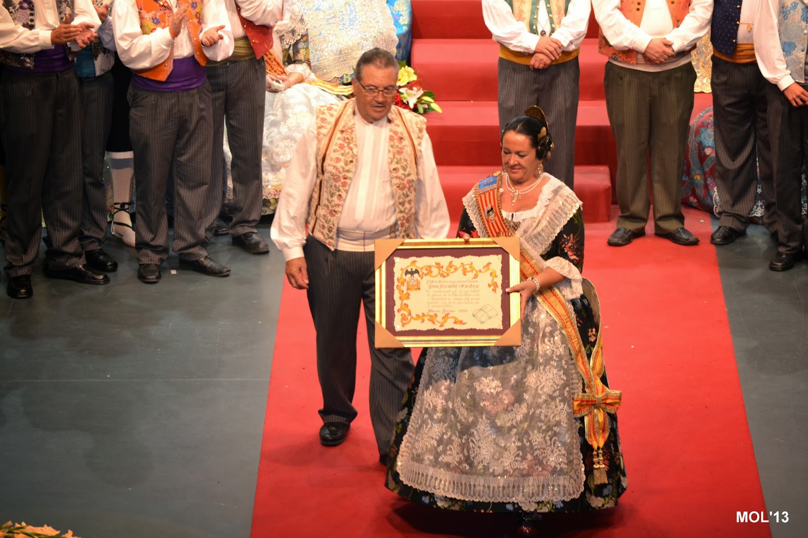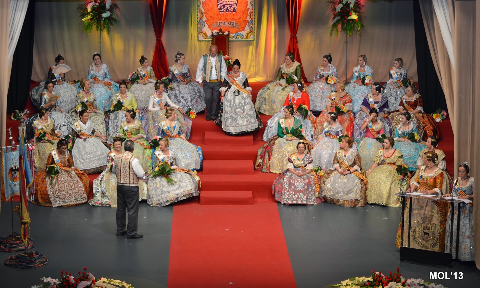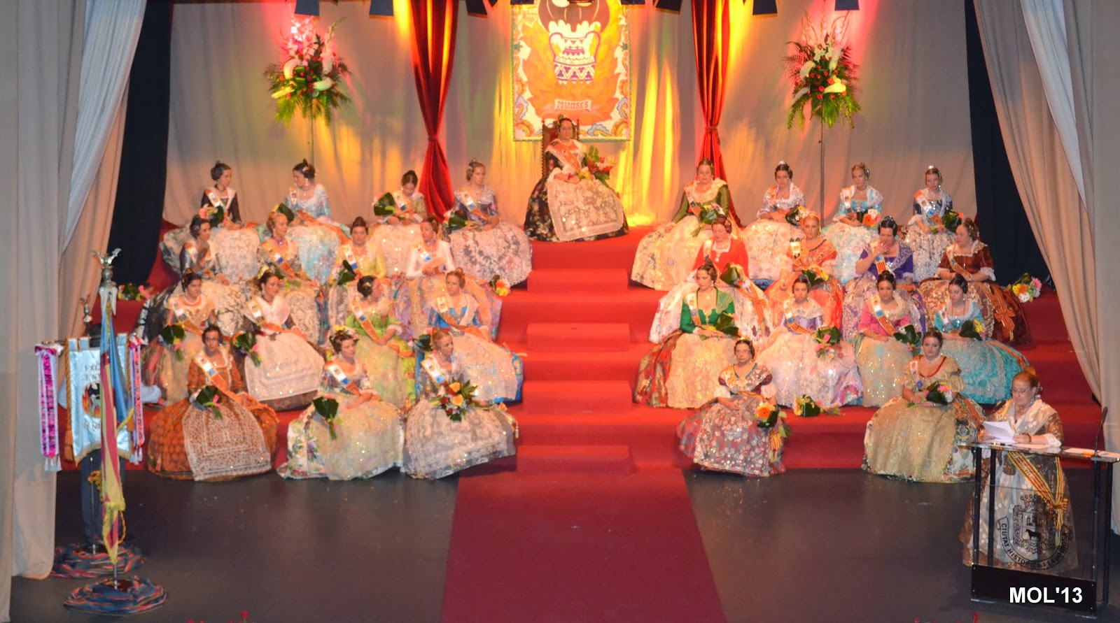 L’escenari de l’Auditori replet de falleres va despedir a la Fallera Major eixint, de 2013, i va donar-li l’entrà a la Fallera Major per a 2014, que va pendre possessió en l’admiració i aplaudiment de tot el public que omplia la sala de l’Auditori.