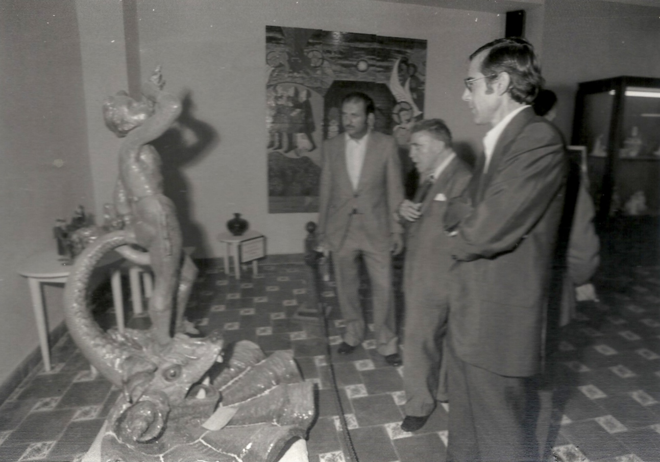 Fotografia on es pot vore al primer director del Museu José Royo Vilar en unes de les peces que deuen d’estar en l’almagasen guardades.