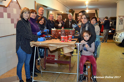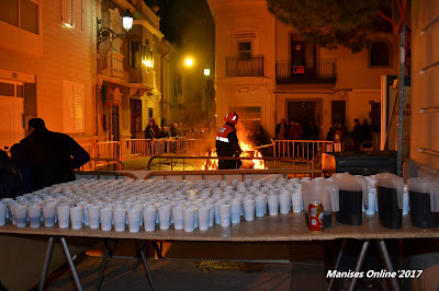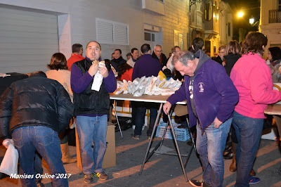 Durante dos días todos los miembros de la clavaría se han dedicado a preparar los bocadillos y la bebida para que la entrega de l’entrepà en 2 botifarres i all i oli, junt a un got de vi negre, estuviesen a punto. En total han sido 2.500 bocadillos los que se han entregado a los que se han acercado a ver quemar la hoguera en la Capilla de San Antonio (confluencia entre la calle San Juan, Plaza del Corazón de Jesús y Mossen Pere Esplugues).