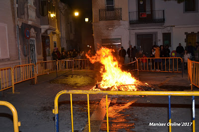Momento en que a las 19:30 horas, del día 28, dio comenzó a arder la hoguera que era el inicio de la noche festiva.