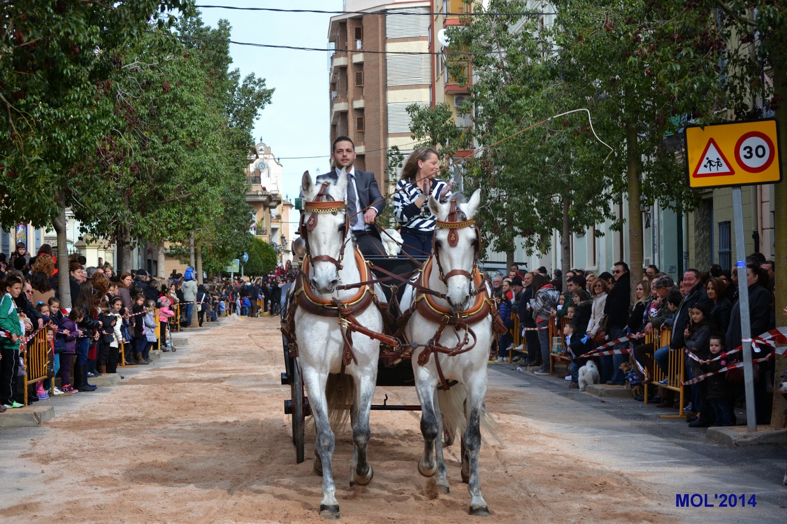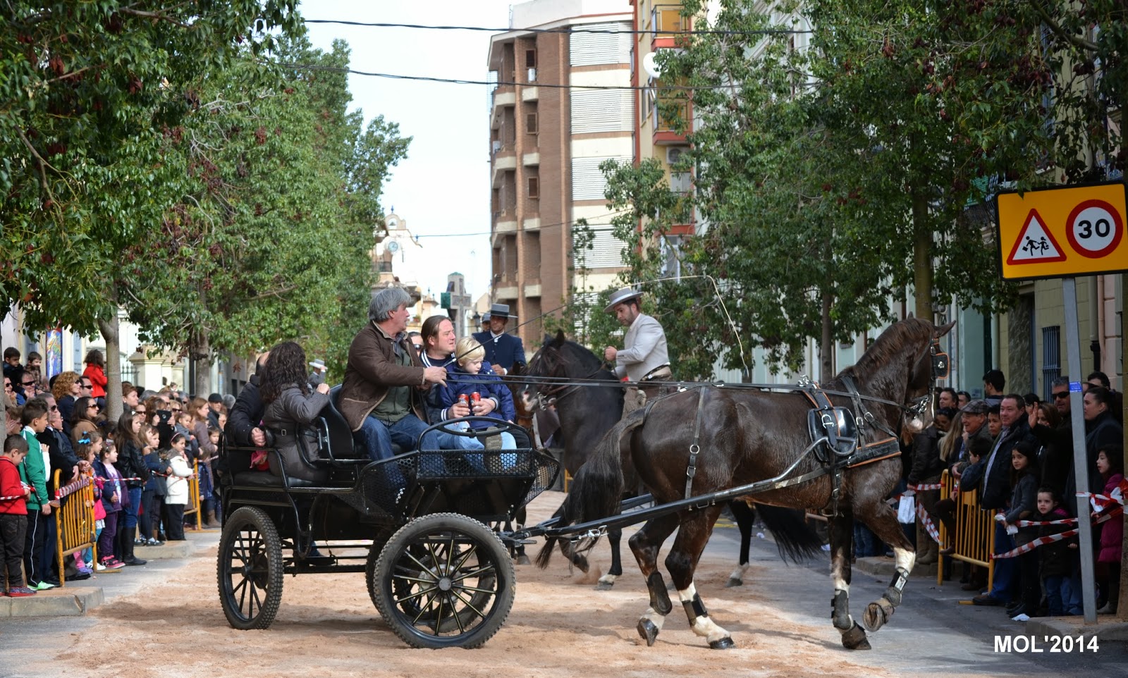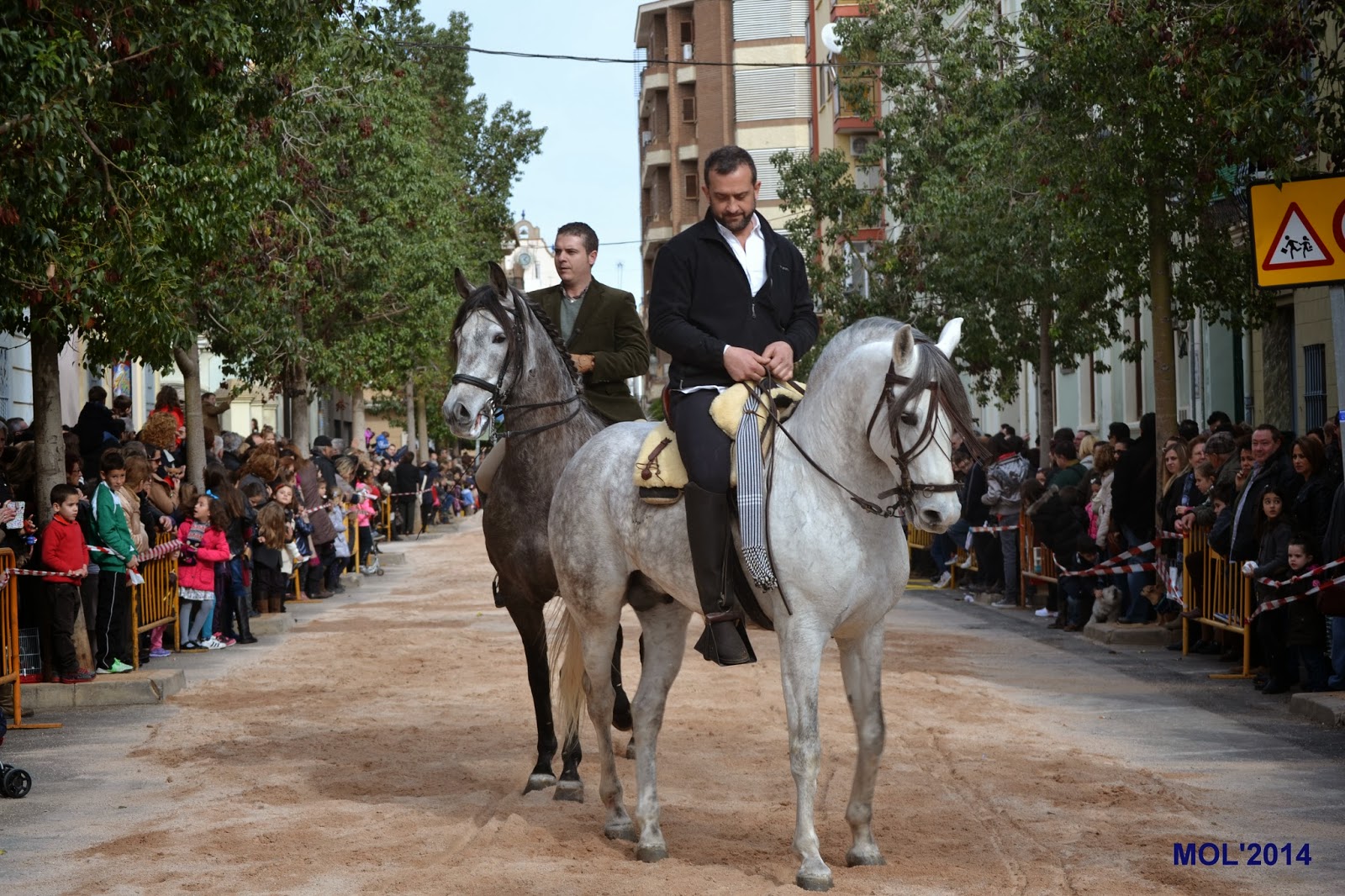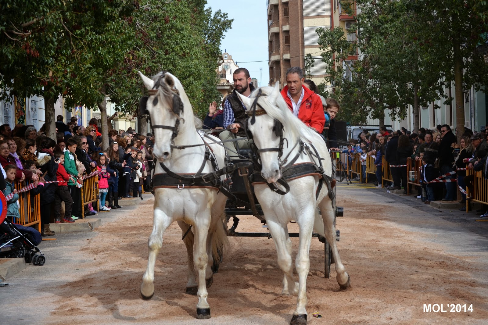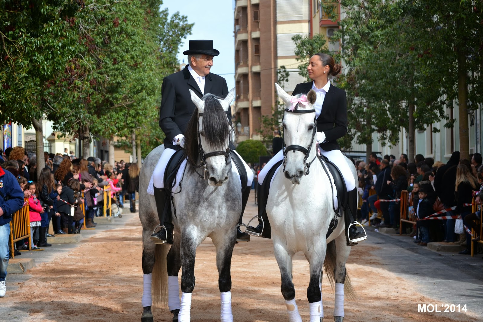 Una vez terminada la bendición de los animales domésticos, le llegó el turno a los caballos y caballerizas, que con gran elegancia y vistosidad fueron desfilando. Un locutor iba explicando qué es lo que hacían, cómo iban vestidos los jinetes y a que cuadra pertenecían. Antes de comenzar la Avda. de Blasco Ibáñez, lugar de concentración, era un inmenso mar de personas y caballos mezclados que esperaban impacientes el desfile, para poder mostrar a los presentes su dotes en el manejo de la equitación y las amazonas, algunas muy jóvenes, que fueron aplaudidas por todo el público asistente.