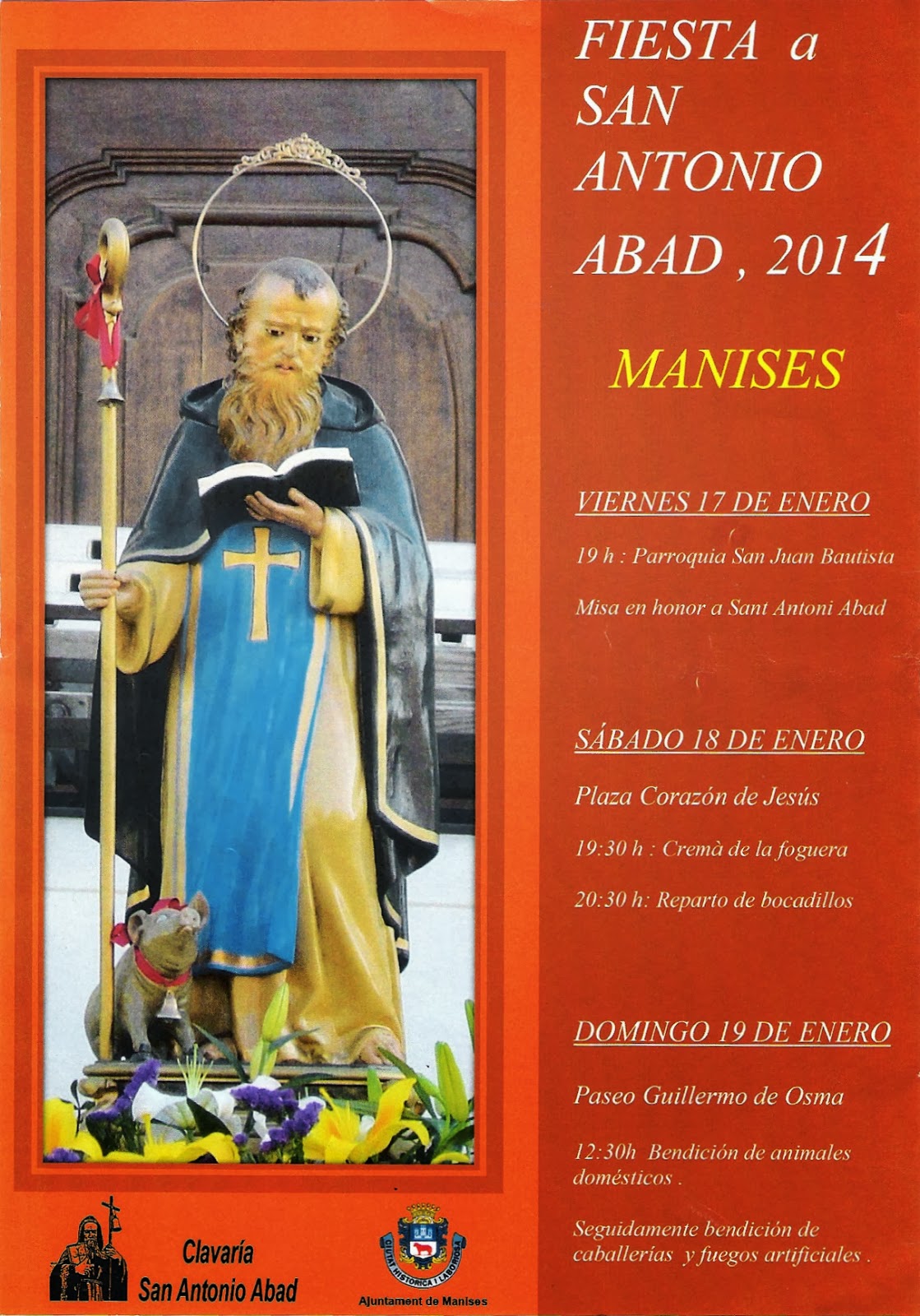Comenzaron el pasado viernes día 17 de Enero con la Misa en la Parroquia de San Juan Bautista, el sábado día 18 tuvo lugar la popular BOTIFARRÀ en la calle de Mossen Pere Esplugues, en la Capelleta de Sant Antoni y finalizó ayer Domingo día 19 con la bendición de los animales domésticos en el Passeig de Guillermo Joaquín de Osma, delante de la antigua Escuela de Cerámica.