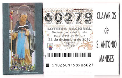 Si las cuotas y aportaciones son unas de las maneras de aportar dinero para los gastos que comporta la fiesta, no es menos importante la lotería, la cual tanto en la del Niño como en Navidad tiene una presentación original y distinta, como se puede ver en las imágenes. Deseo mucha suerte a este grupo de clavarios que trabajan en una fiesta tradicional y popular manisera.