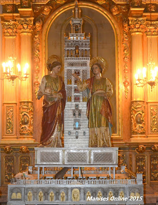 Imagen de las Santas Patronas delante del altar que existe en la Iglesia de San Juan Bautista de Manises, desde donde sale la procesión por la calles de la Ciudad, como acto final dedicado a Nuestras Patronas.