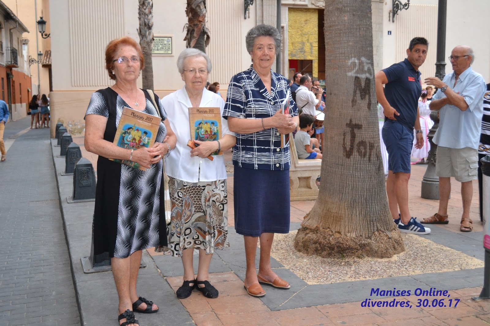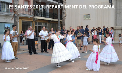 Este programa se entregó gratuitamente (el que quería colaborar lo hizo) a los maniseros que se acercaron a la Plaza de la Iglesia el pasado día 30 de Junio, por los clavarios, en un acto cque contó con miembros del grupo del Grup de Danses Repicó i del tabalet i dolçaina en la parte musical.