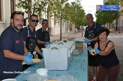 Todos los actos populares destinados a los maniseros se han celebrado delante de la sede de la Clavaria, en la calle de Guillermo José de Osma (donde está la antigua Escuela de Cerámica) y tanto las paellas del día 14 de Julio, como la botifarrà del día 15, ha sido un completo éxito, tanto que aumentando la cantidad de bocadillos en la botifarrà i alli oli que se habían preparado, aún faltaron unos pocos.