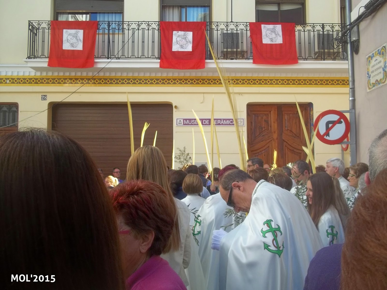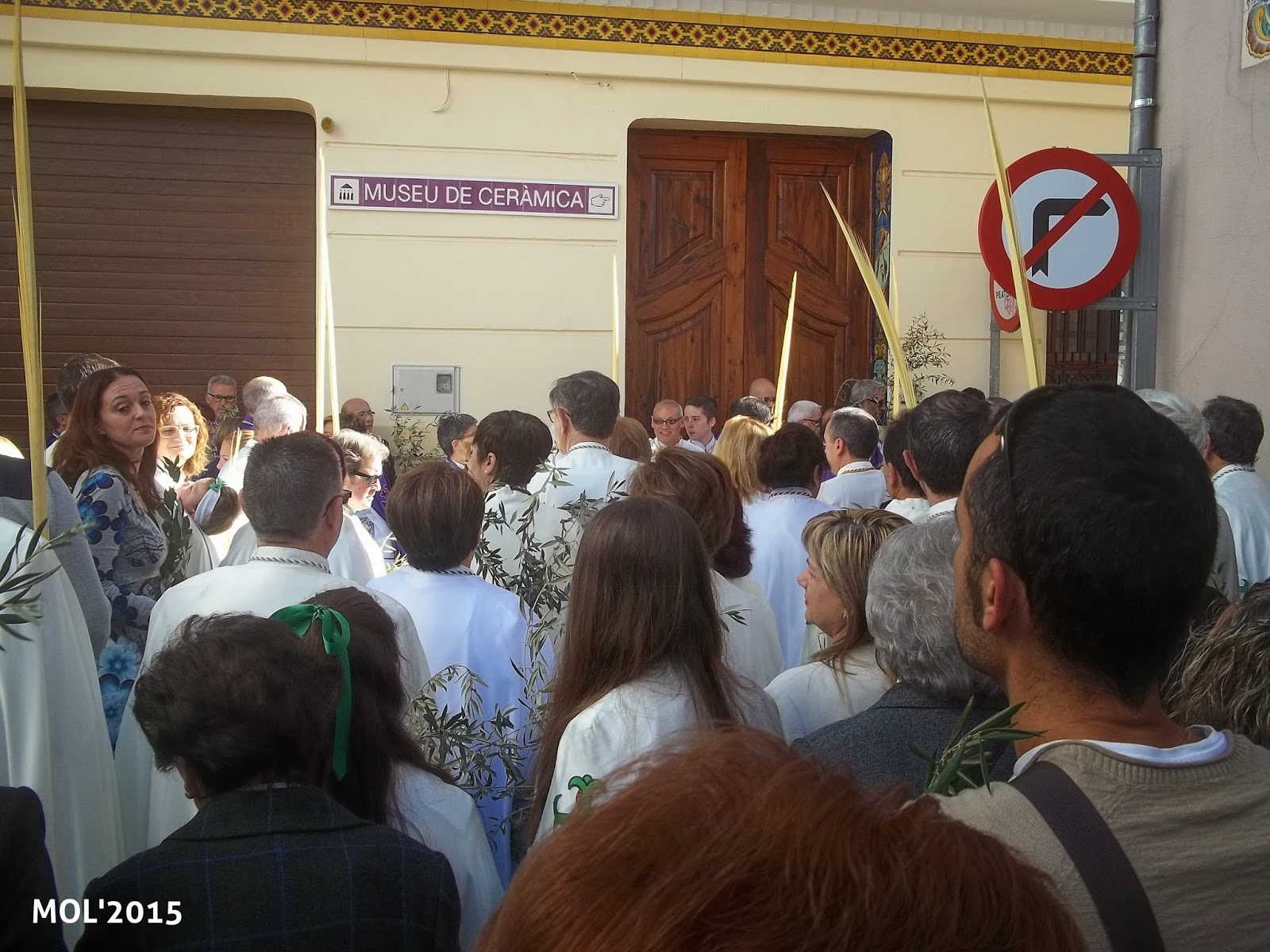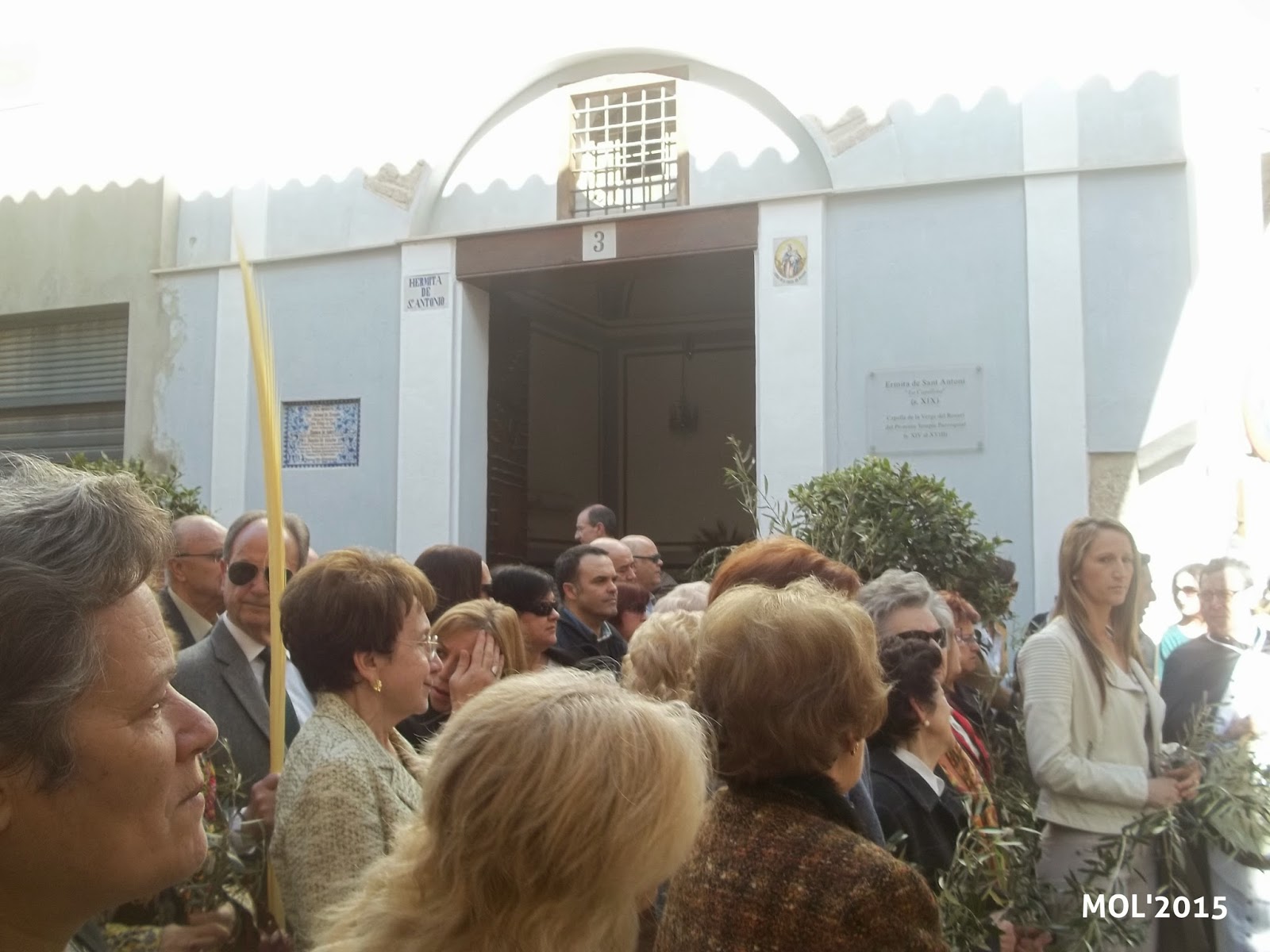 El Domingo día 29, a las 10:30 horas, en la Capelleta de Sant Antoni, en la calle Mossen Pere Esplugues, tuvo lugar la concentración para celebrar el Domingo de Ramos, al que acudieron todas las Hermandades y un gran número de feligreses. Los niños -en primer término- llevaban los ramos de olivo que previamente se habían preparado para que tanto niños como mayores los pudiesen coger.