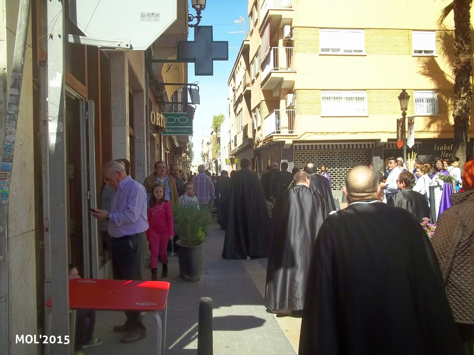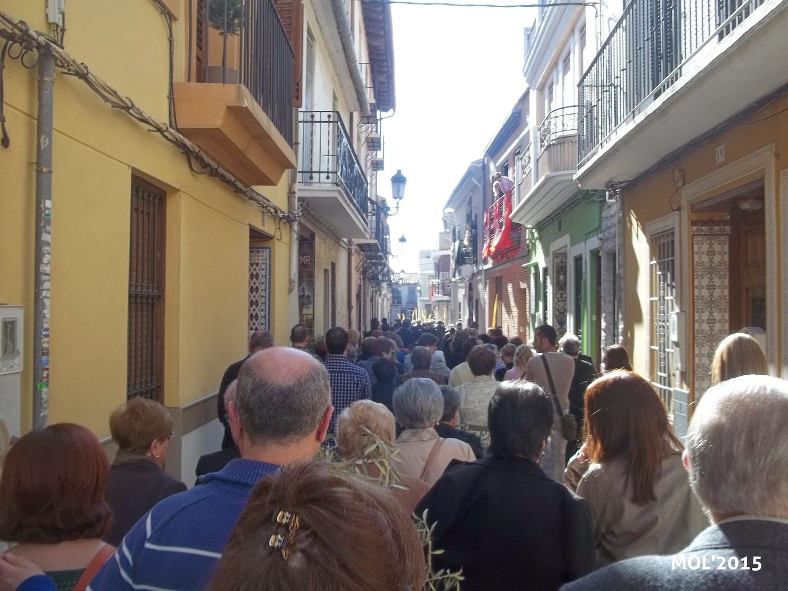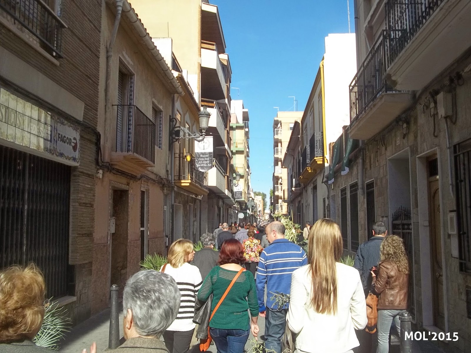 El Domingo día 29, a las 10:30 horas, en la Capelleta de Sant Antoni, en la calle Mossen Pere Esplugues, tuvo lugar la concentración para celebrar el Domingo de Ramos, al que acudieron todas las Hermandades y un gran número de feligreses. Los niños -en primer término- llevaban los ramos de olivo que previamente se habían preparado para que tanto niños como mayores los pudiesen coger.