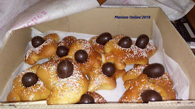 Una vez la Virgen y el Resucitado dentro de la Parroquia, la mayoría de los miembros de las hermandades nos unimos y en procesión, informal, nos dirigimos a la Casa Residencia de San Francisco y San Vicente, a llevarles unas monas a nuestros mayores.