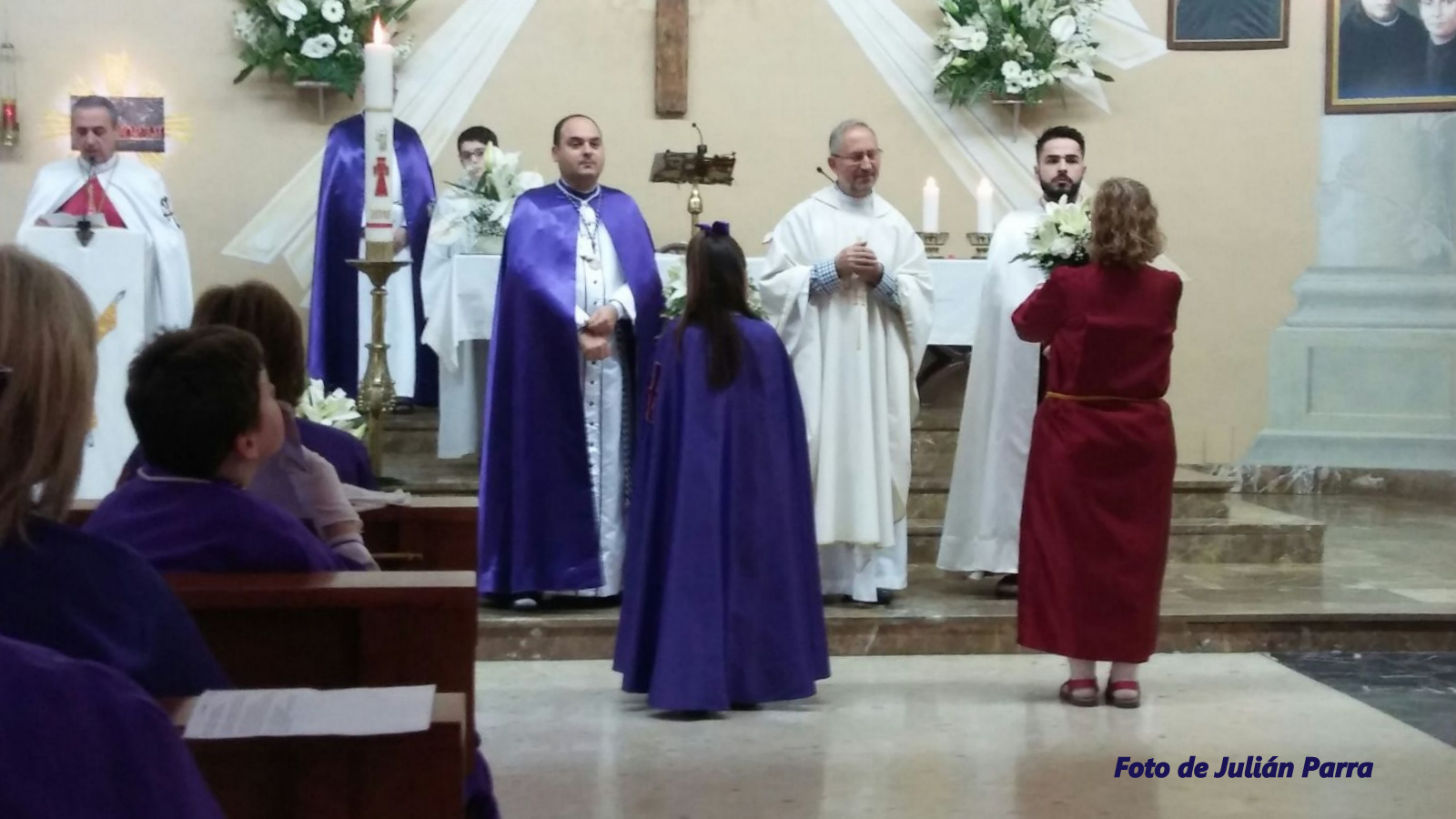 Esperando -a pie de altar- las ofrendas llevadas por los componentes de las dos hermandades.