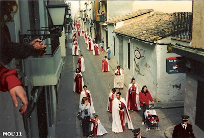 Las mías propias, que son las últimas, que corresponden a los primeros años del nuevo impulso, 1994, en que éramos muy pocos los que nos vestimos para poder empezar a retomar la siempre importante y tradicional Semana Santa Manisera, que nunca debió desaparecer.