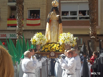 Por otra parte la Hermandad de la Esperanza » Els Verts » y de la Soledad » Els Negres » -saliendo de la parroquia con la imagen de la Virgen-, han recorrido las calles Major, Dr. Gargallo, San Vicente, Dr. Catalá, Plaça del Castell, Sagrari, Obispo Soler y Major, para ir al encuentro en la Plaza de la Iglesia.