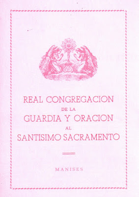 La Real Congregación de la Guardia y Oración al Santísimo Sacramento fue establecida en la entonces villa de Manises, el Jueves Santo 5 de Abril de 1855. En 1864 acordó celebrar unas solemnes XL Horas y, en 1870, una Novena a Jesús Sacramentado. De las muchas entidades, de todo tipo, habidas en Nuestra Parroquia (e incluso en nuestro pueblo) a lo largo del siglo XX, ésta es la más antigua y, curiosamente, la que aún perdura. Y quizá el secreto de ello radique en lo permanente de su misión y en la belleza con que la lleva a cabo. Custodiar estas joyas como oro en paño, y transmitirlas en su integridad a las nuevas generaciones, merece todo esfuerzo y dedicación.