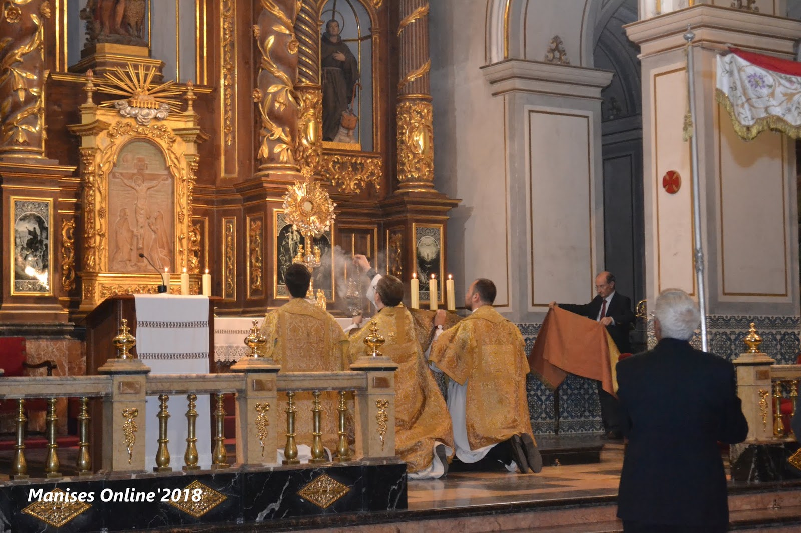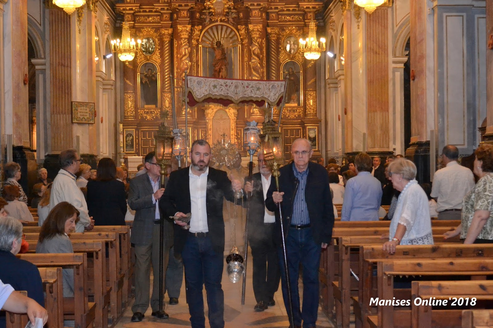 La Real Congregación de la Guardia y Oración al Santísimo Sacramento fue establecida en la entonces villa de Manises, el Jueves Santo 5 de Abril de 1855. En 1864 acordó celebrar unas solemnes XL Horas y, en 1870, una Novena a Jesús Sacramentado. De las muchas entidades, de todo tipo, habidas en Nuestra Parroquia (e incluso en nuestro pueblo) a lo largo del siglo XX, ésta es la más antigua y, curiosamente, la que aún perdura. Y quizá el secreto de ello radique en lo permanente de su misión y en la belleza con que la lleva a cabo. Custodiar estas joyas como oro en paño, y transmitirlas en su integridad a las nuevas generaciones, merece todo esfuerzo y dedicación.