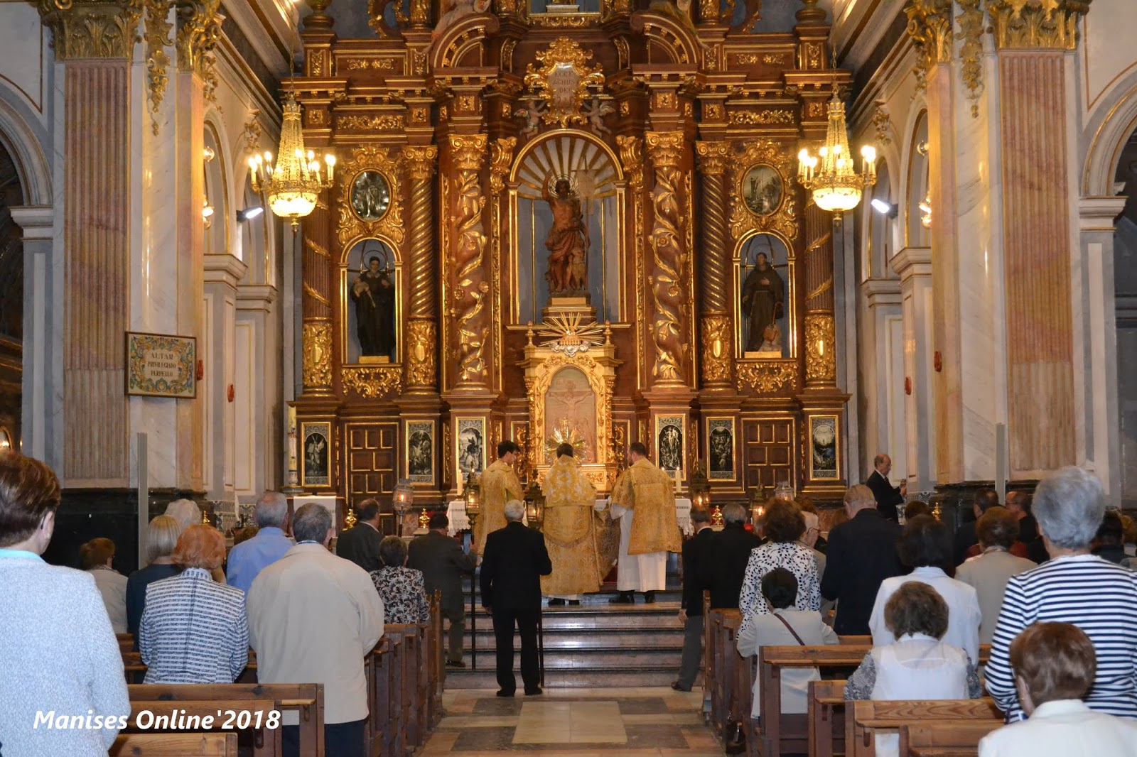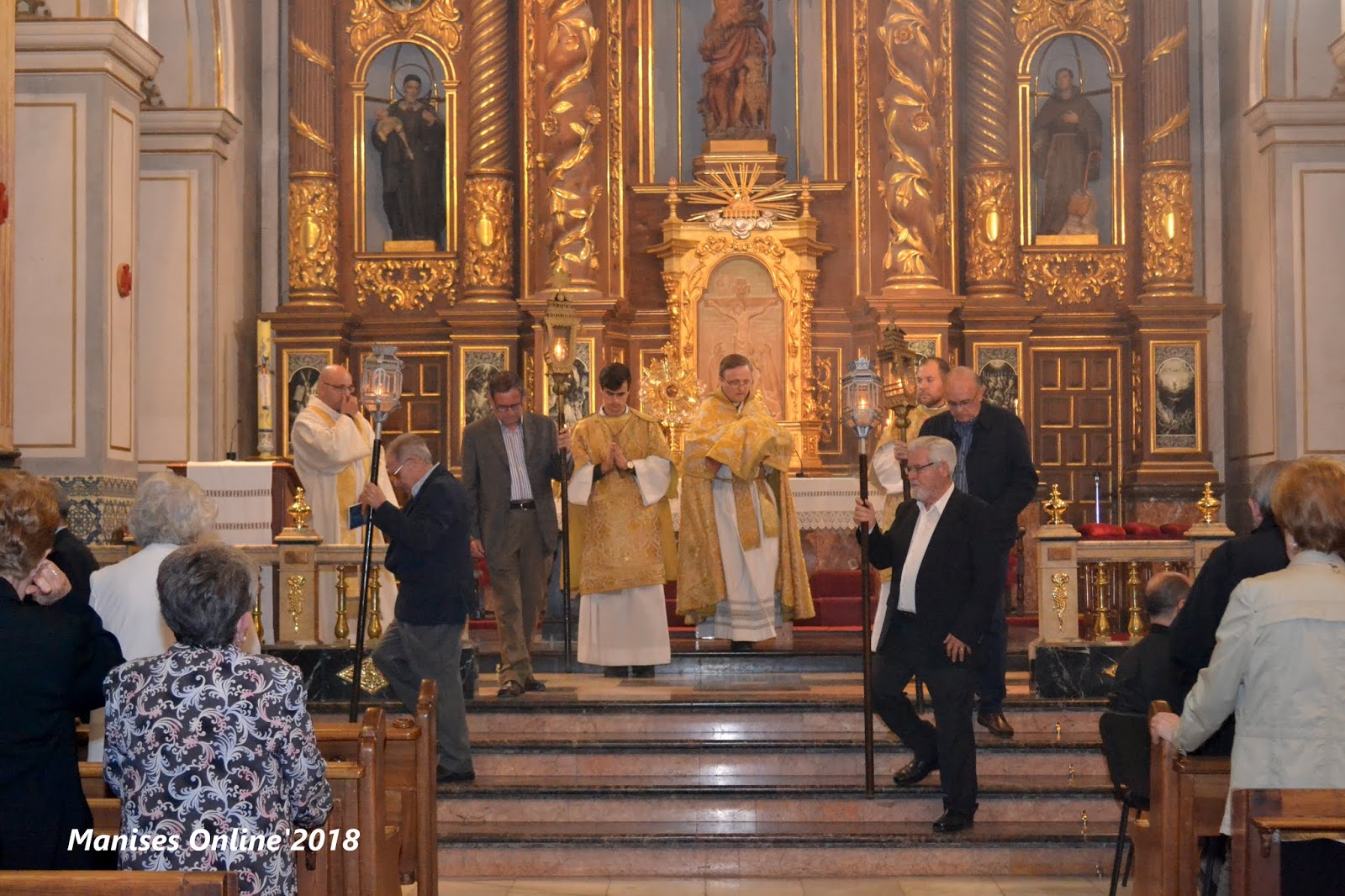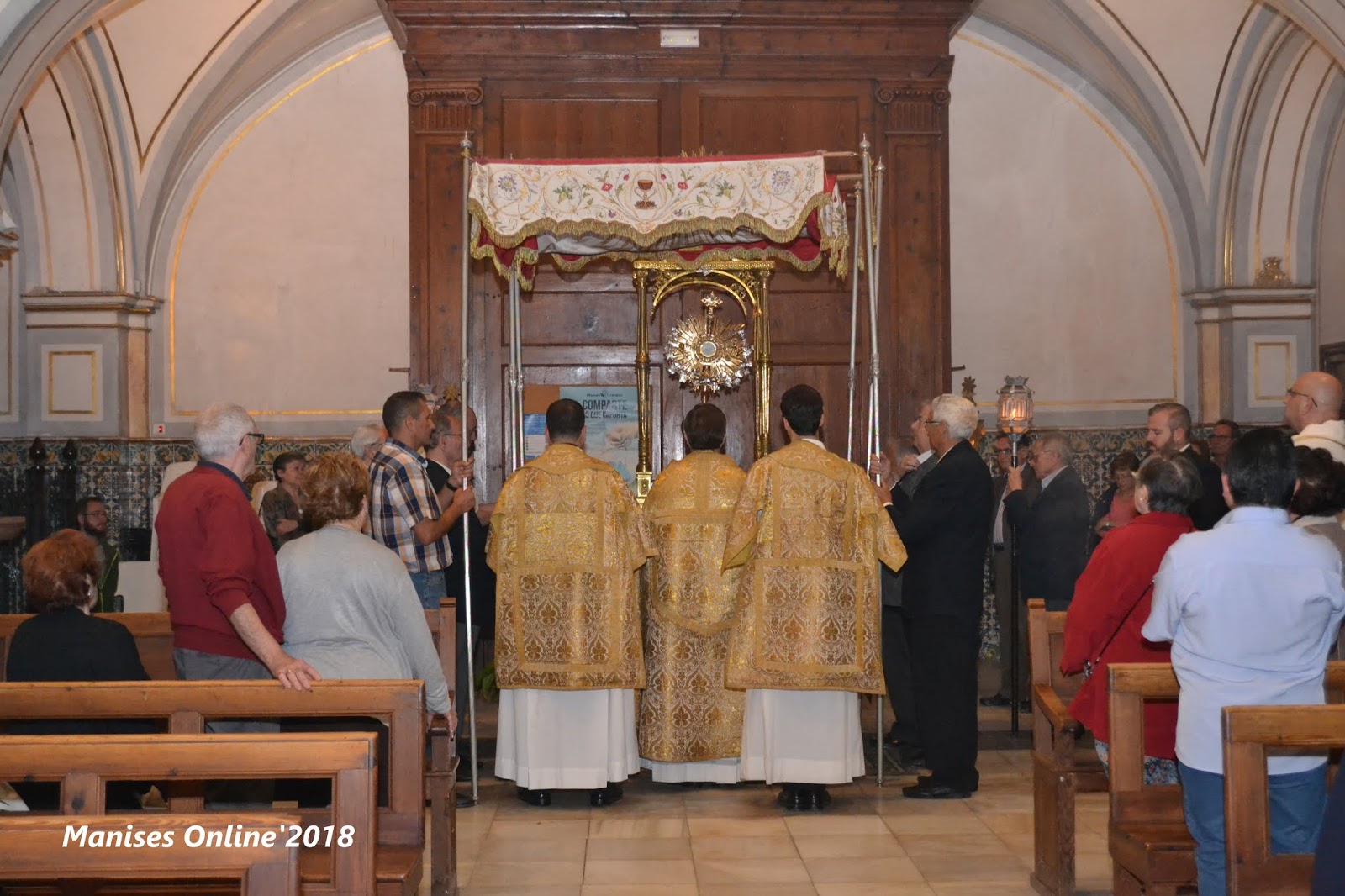 El martes día 22 de Mayo tuvo lugar la Solemne celebración del final de los 3 días en que se da por terminada la novena y las XL Horas. Este año el altar se ha colocado dentro de la iglesia, a la entrada, ya que la plaza de la Iglesia está en obras por las reformas que están teniendo lugar en la fachada y tejado de la parroquia.