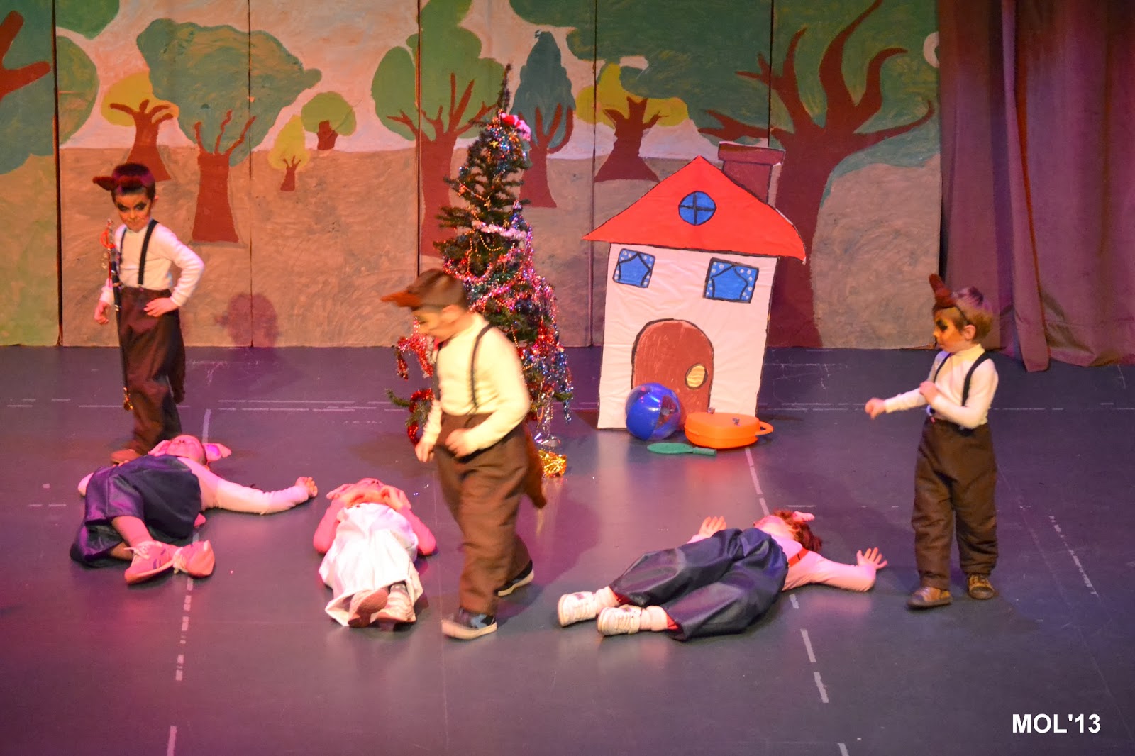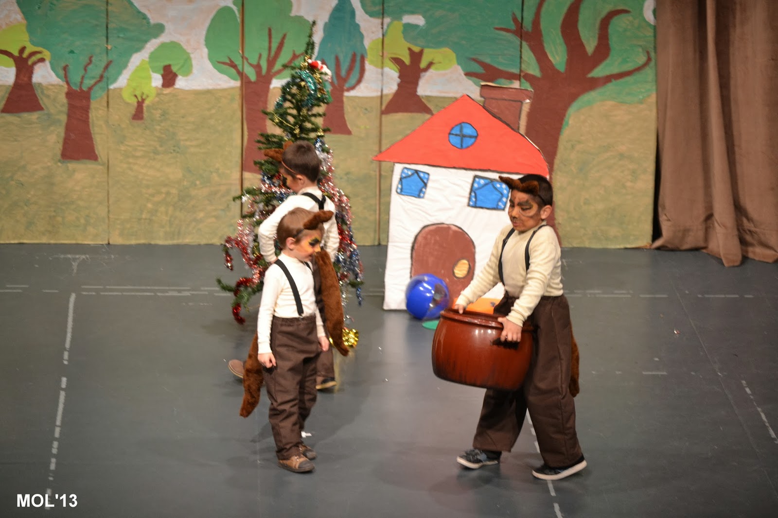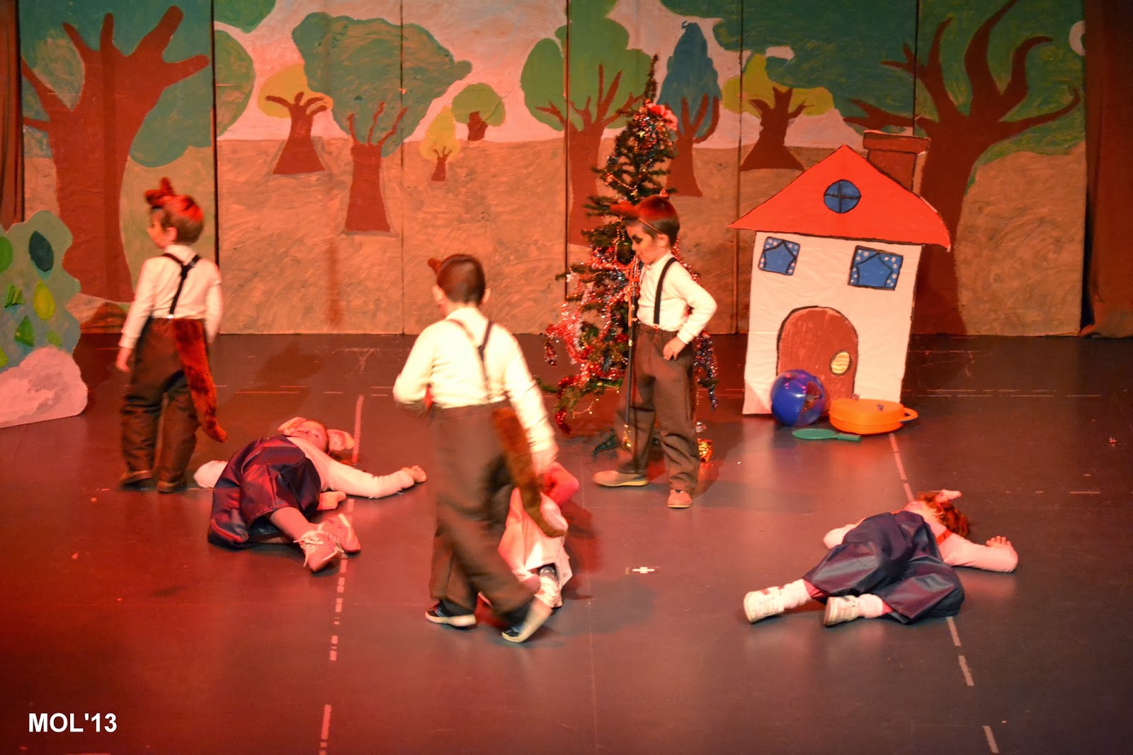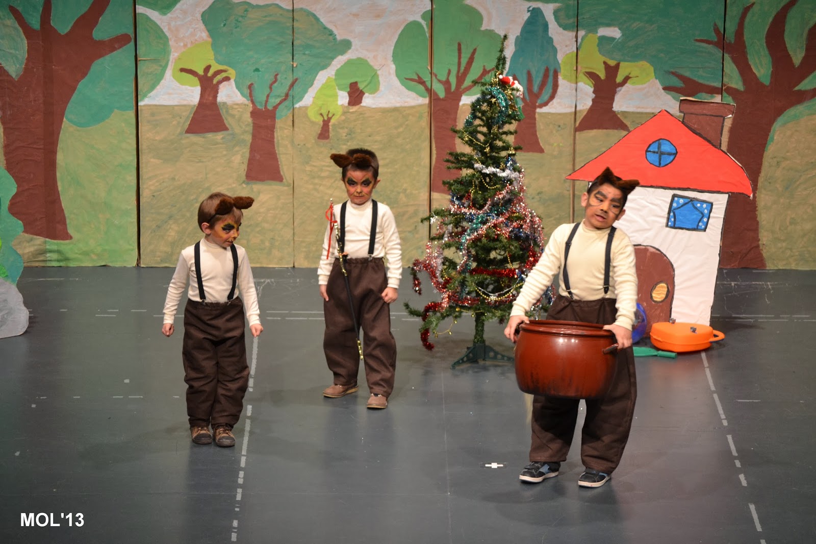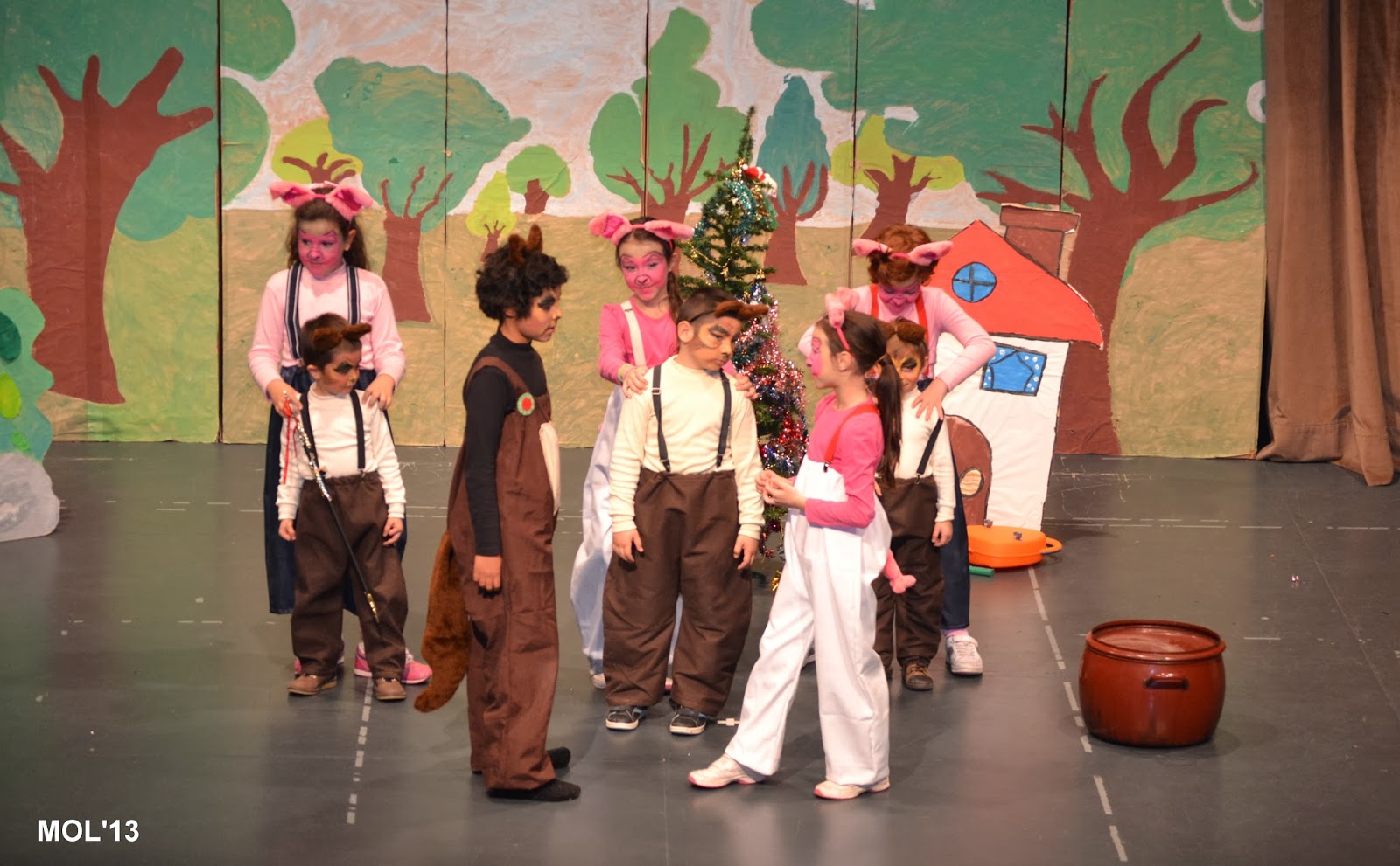 Los más pequeños han representado ¿Dónde está el caldero?. La directora ha puesto en antecedentes al público, que siendo como era la primara vez que actuaban y siendo tan pequeños, iba a estar apoyándoles dando letra y orientándoles, con el fin de que no fallase nada.