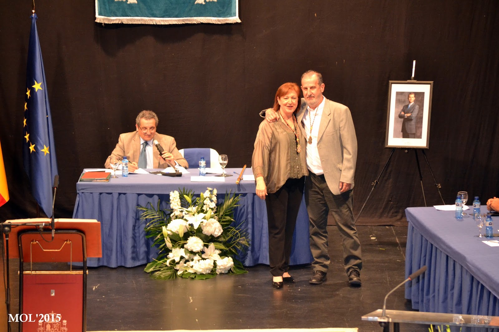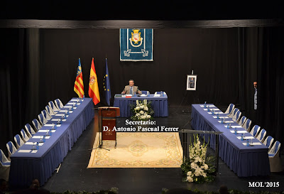 El primer en apareixer en l’escenari -preparat per a l’ocasio- va ser el Secretari de l’Ajuntament de Manises, Sr. Pascual, el cual va posar en antecedents a tots els presents del motiu de perqué hui s’havia fet el Ple de l’Ajuntament en l’Auditori i el motiu de l’acte que s’anava a celebrar.