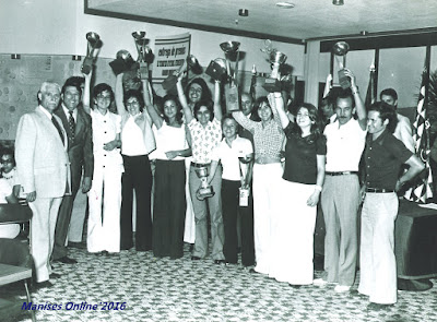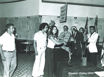 Hemos llegado a 1974, cuando se les reconoce a la Unión Deportiva Manises Femenino, los méritos adquiridos y se les premia con la distinción que recogen de manos de los dirigentes deportivos.