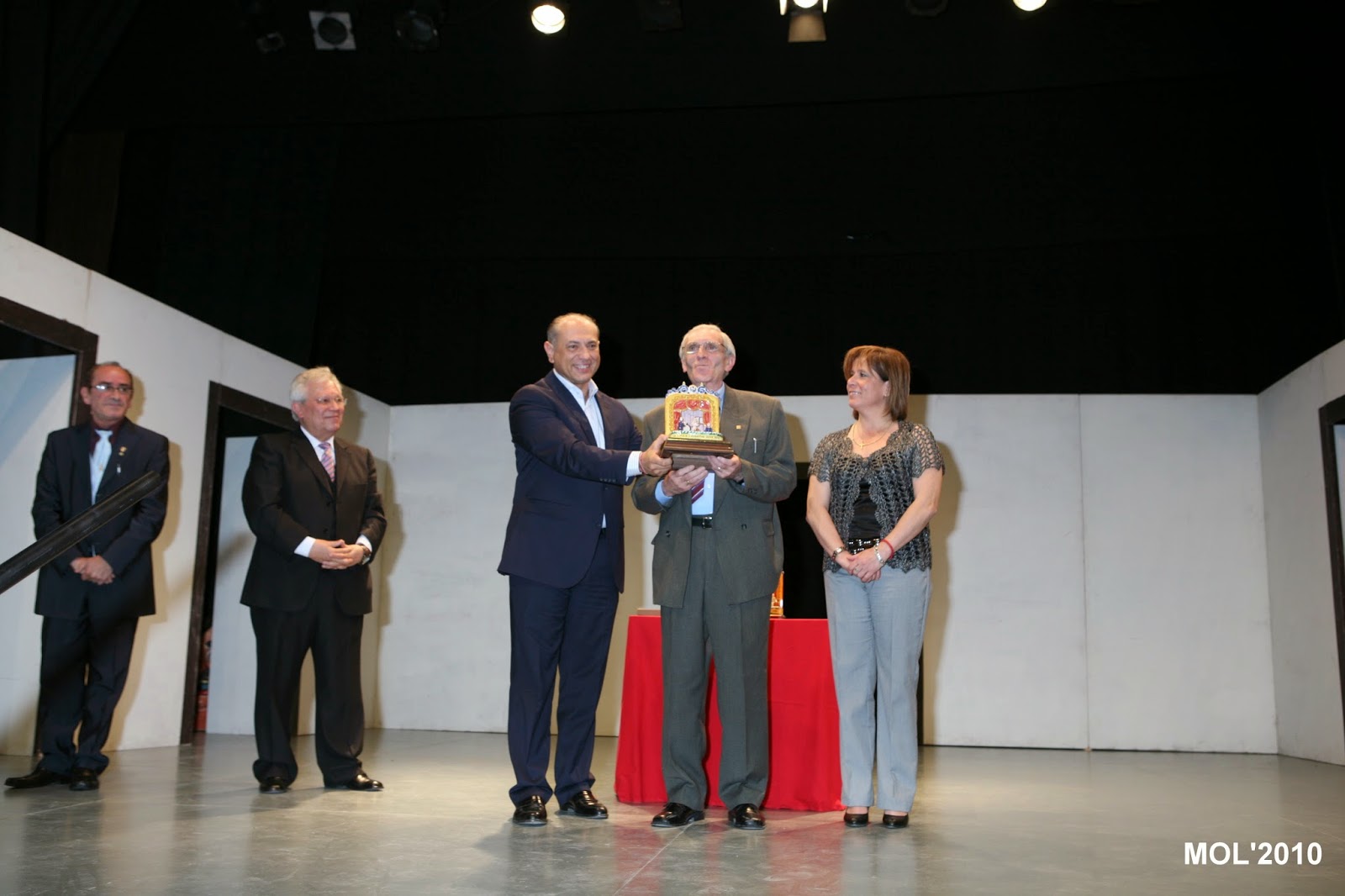 En primer lloc ha pujat Vicente Miralles, a continuacio Alberto Fuertes i finalment Celestino Esteve. Els tres han rebut el premi que consistix en una peça de ceramica que manifesta un escenari d’un teatre.