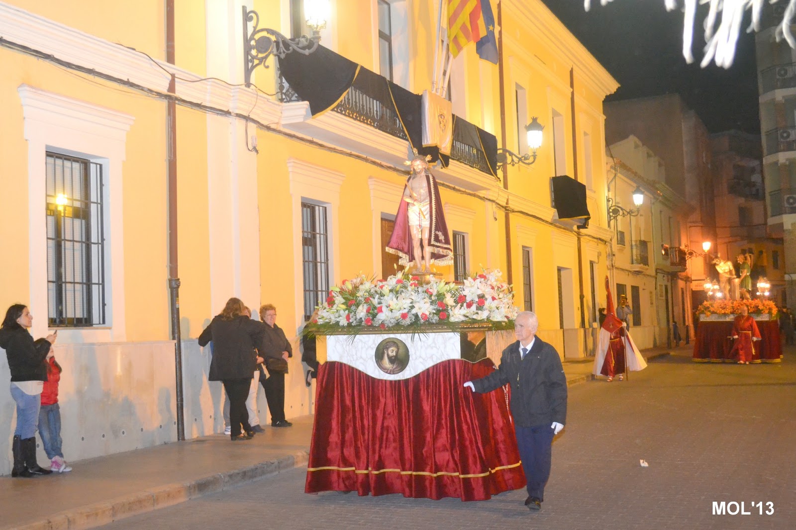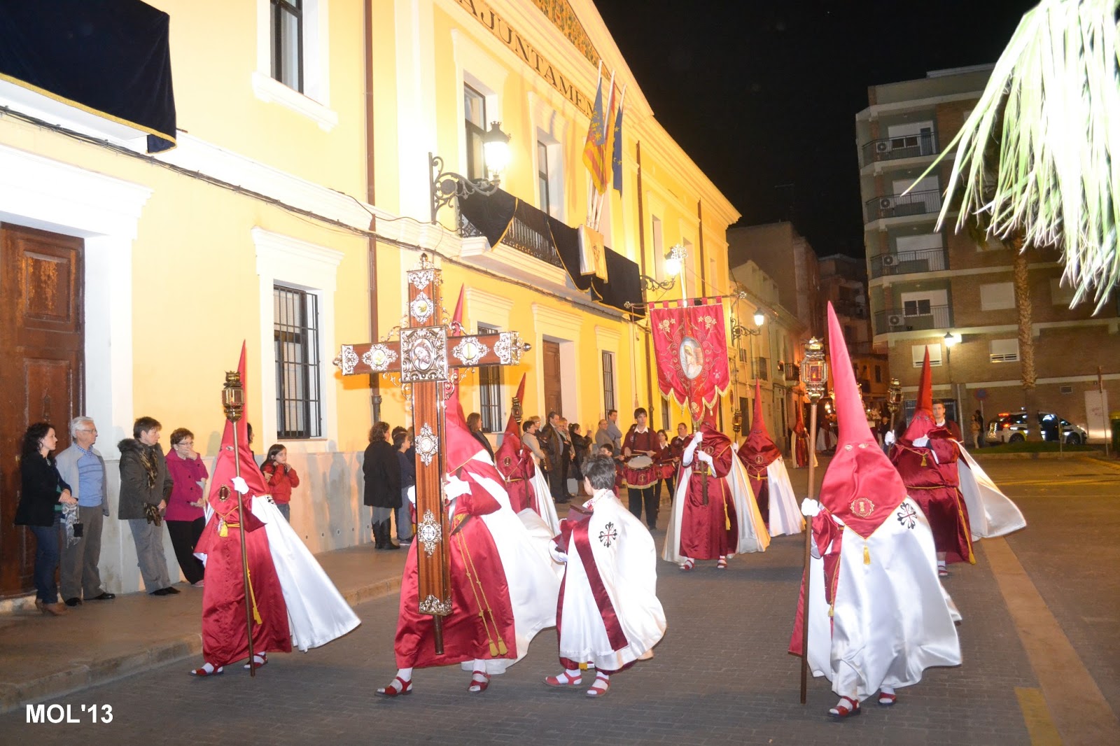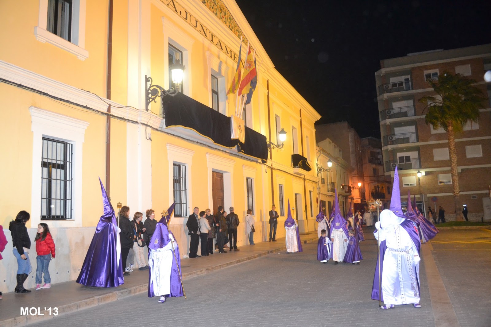 Fotografías de la procesión pasando por delante del Ayuntamiento.