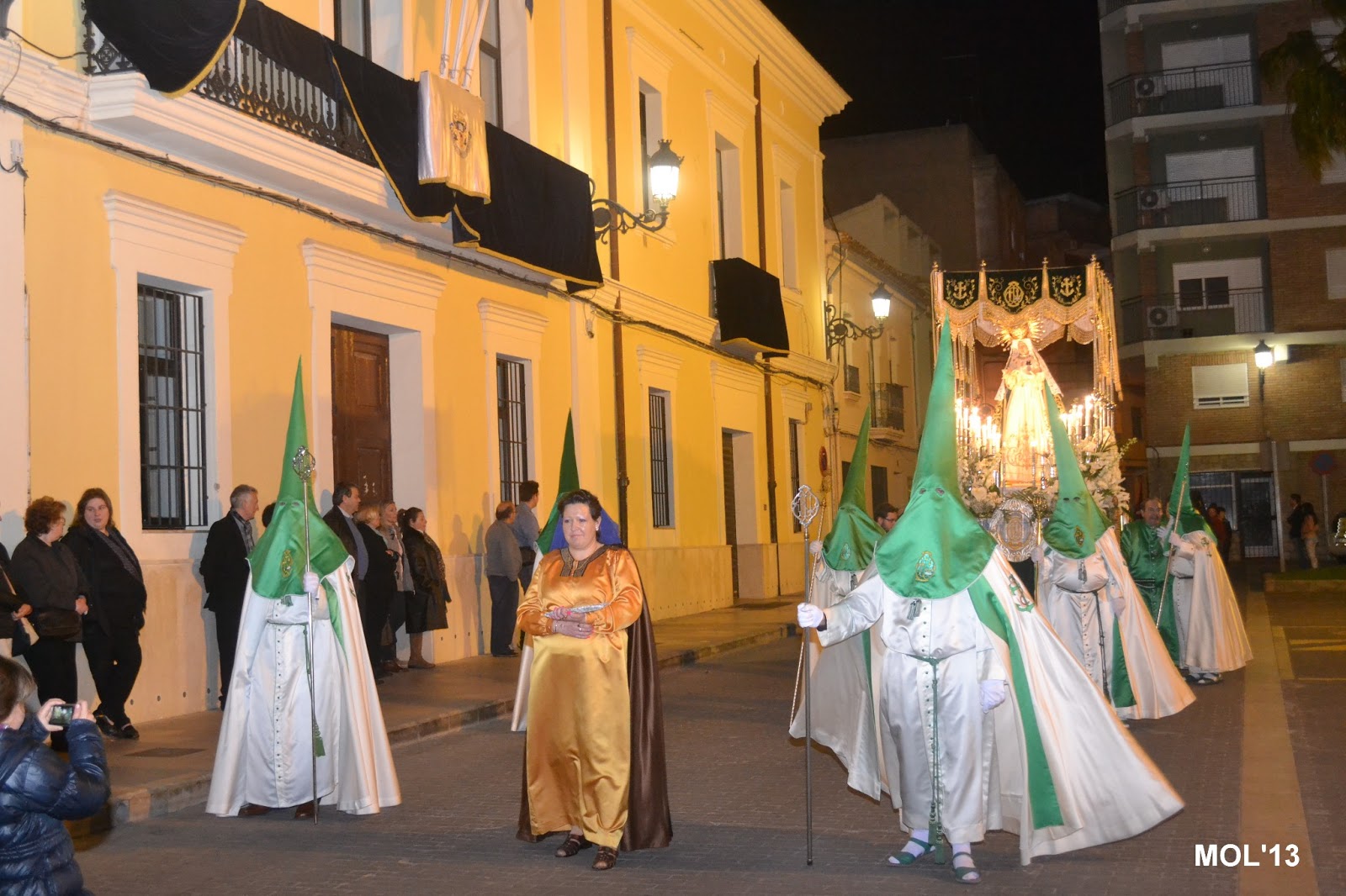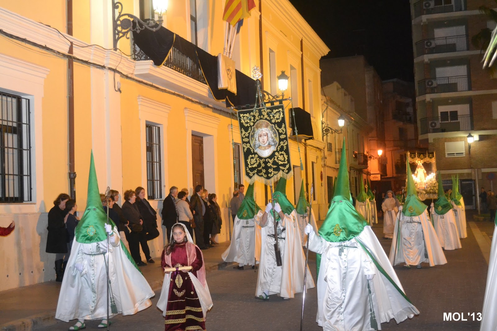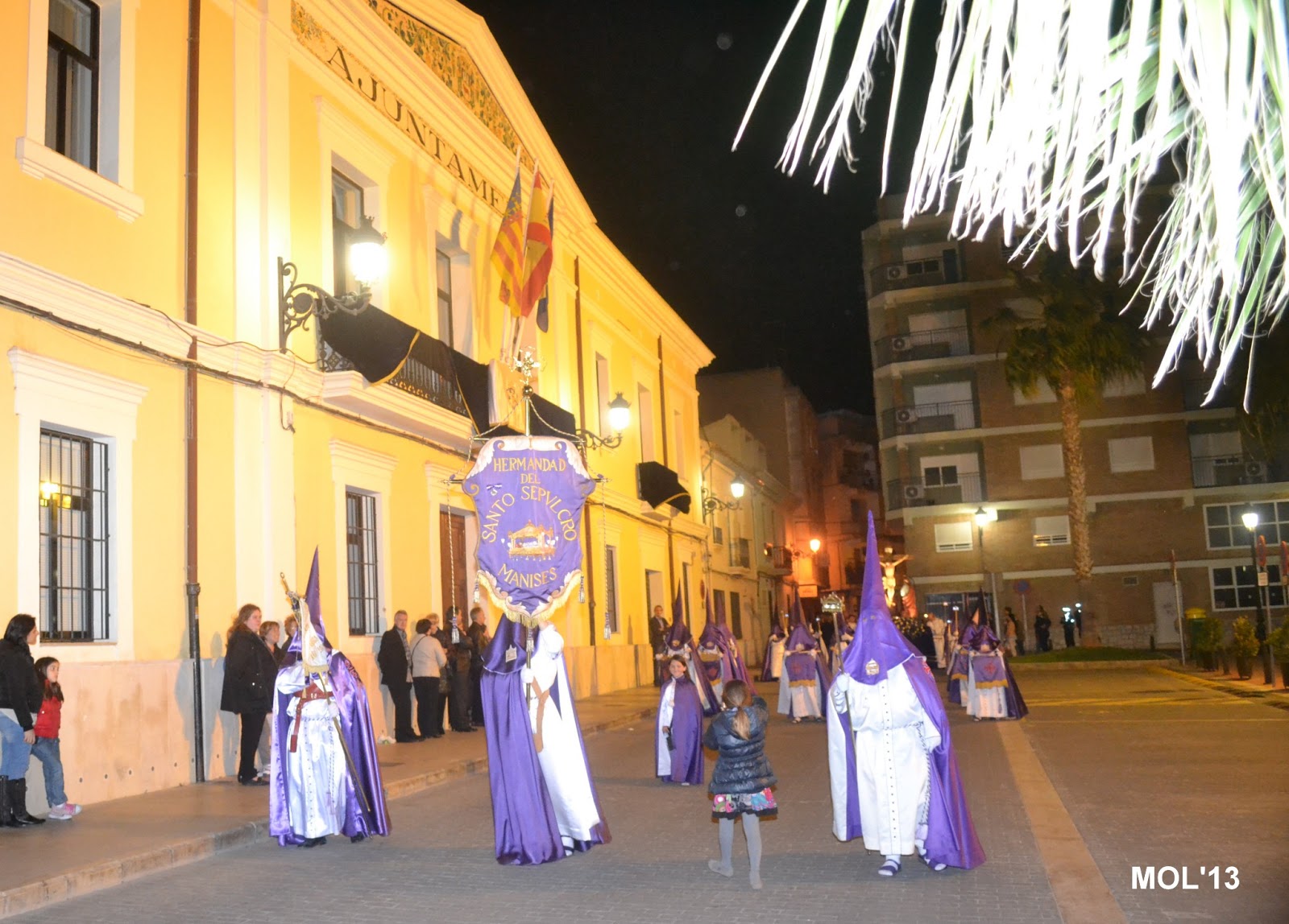 Fotografías de la procesión pasando por delante del Ayuntamiento.