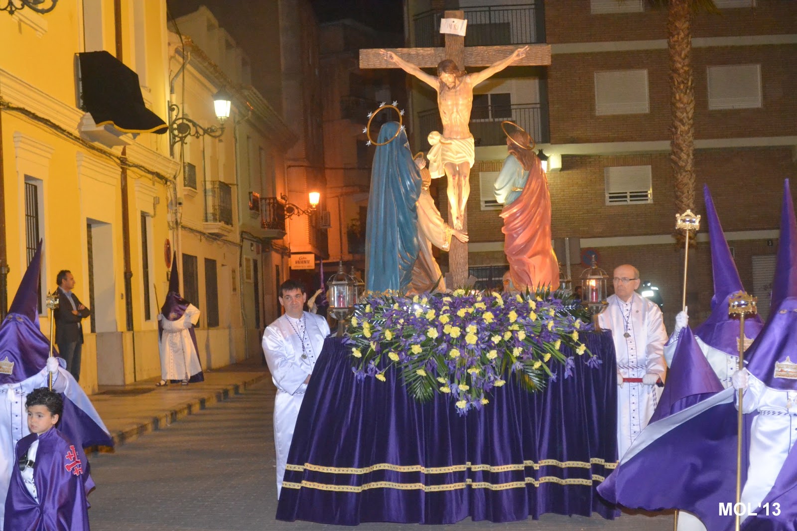 - Hermandad del Santo Sepulcro-Caballeros del Santo Entierro (Els Morats). Seguían los Sacerdotes Don Valentín Peñarrocha y Don Juan Ávila de la Parroquia de San Juan Bautista. Detrás las autoridades civiles y por último la Banda de Música La Artística Manisense.