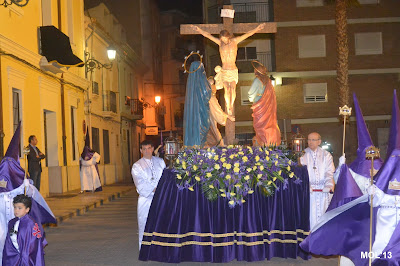 Por la tarde se han celebrado los actos litúrgicos propios del día, que han comenzado a las 17:30 horas en la Parroquia de San Juan Bautista, incluyendo el Sermón de las Siete Palabras. Una vez terminados estos oficios se ha procedido al acto del Descendimiento-DEVALLAMENT, y a continuación las Hermandades se han ido preparando para empezar la Procesión.